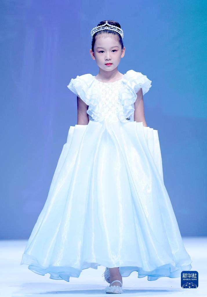 9月9日,小模特在北京中國國際時(shí)裝周(2023春夏系列)舉行的“AMORCODE”童裝發(fā)布會(huì )上展示童裝。
