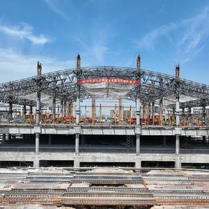 當日,由中鐵建工集團承建的江蘇南沿江鐵路江陰站站房屋蓋鋼結構桁架整體提升完成,項目進(jìn)入金屬屋面施工階段。
