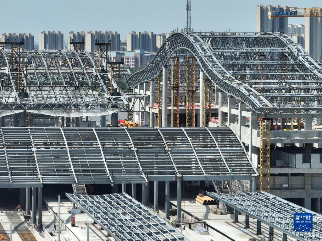 9月9日拍攝的建設中的江陰站站房(無(wú)人機照片)。