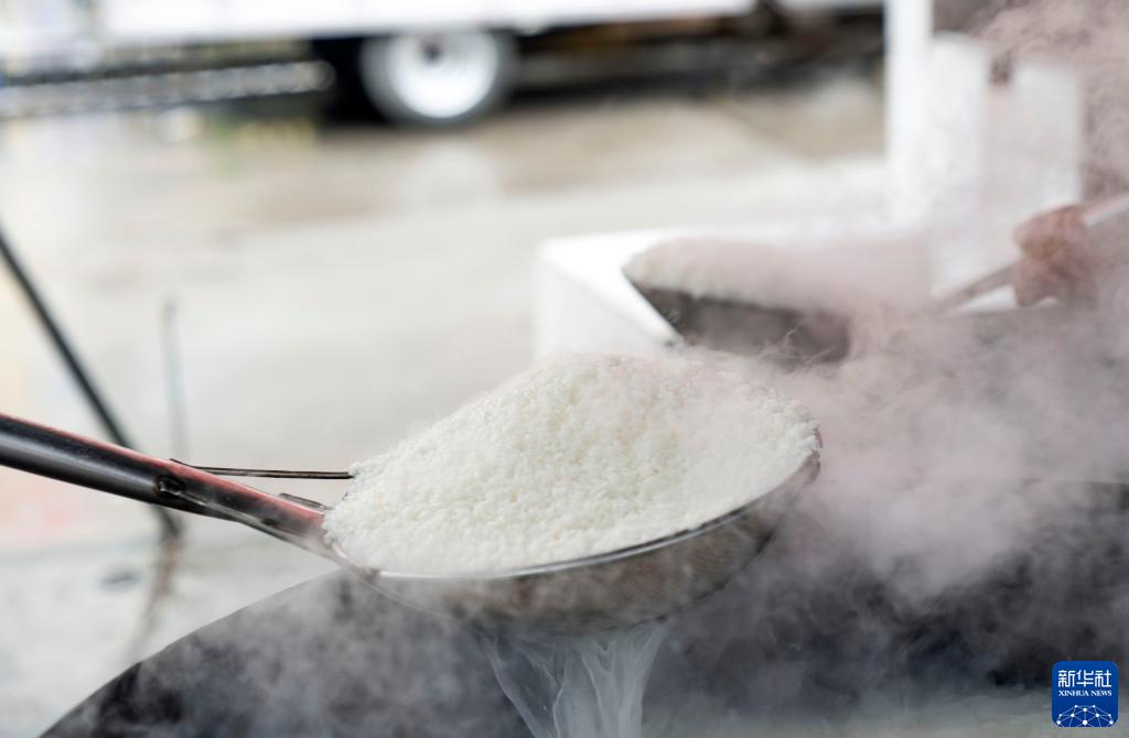 9月9日,在石棉縣新民鄉海耳村臨時(shí)安置點(diǎn),村民志愿者在做飯。