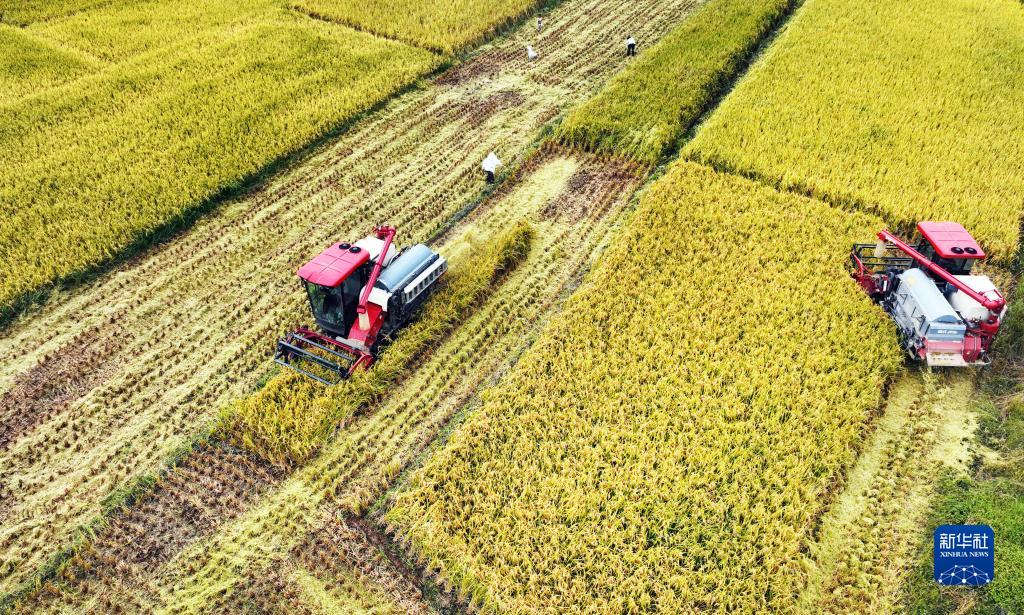 近日,陜西省漢中市洋縣17.3萬(wàn)畝水稻喜獲豐收,鄉村田野處處飄散著(zhù)稻谷的芬香。