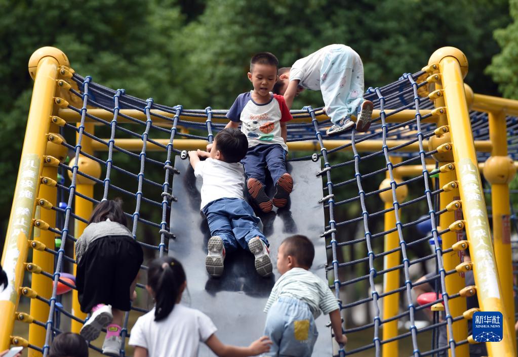 9月10日,小朋友們在安徽省合肥市綠軸公園玩耍。