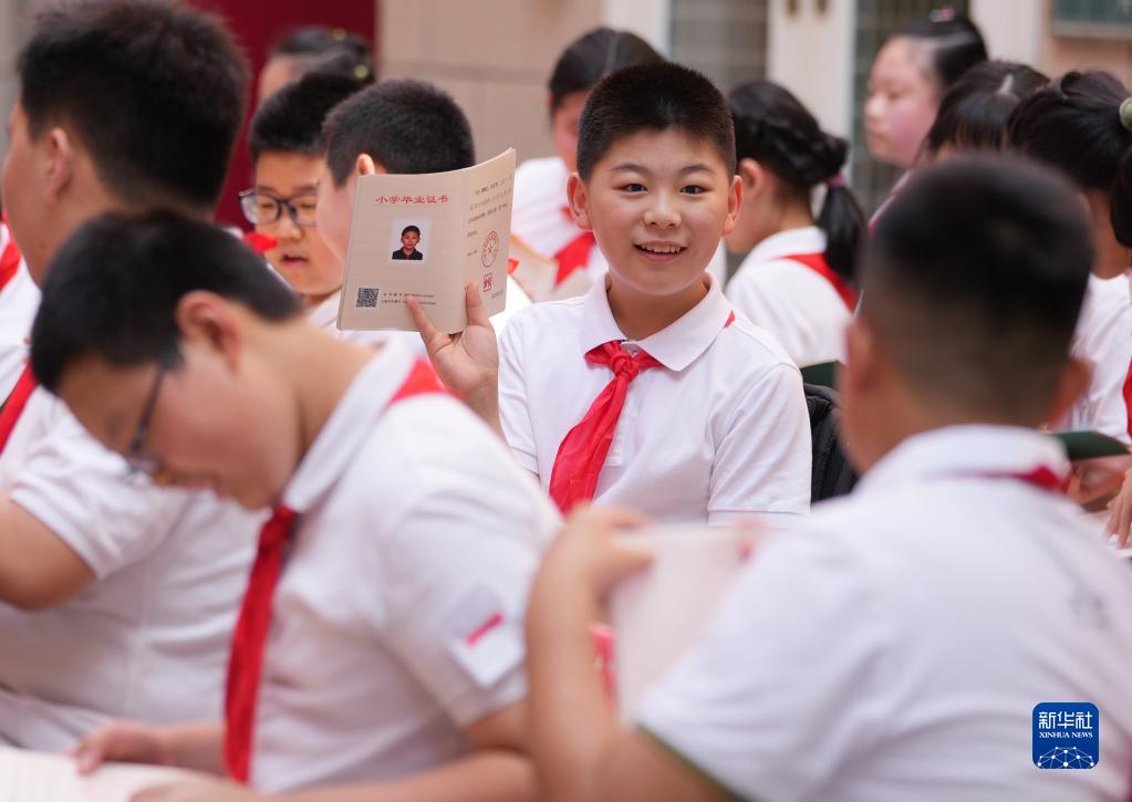9月10日,蓬萊路二小的返校畢業(yè)生向同學(xué)展示自己的畢業(yè)證書(shū)。