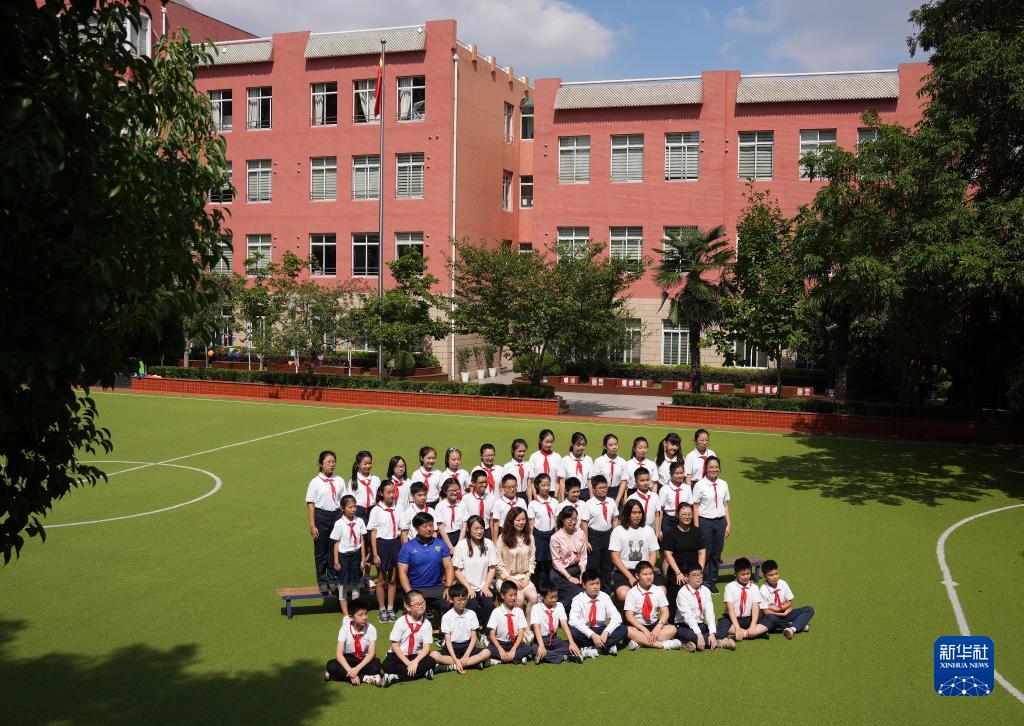 9月10日,蓬萊路二小的返校畢業(yè)生和老師們補拍班級畢業(yè)照。