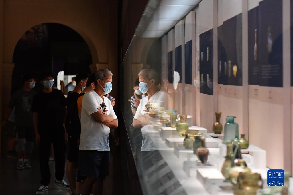 9月10日,市民在長(cháng)沙博物館“砂與火之歌——絲路玻璃文化展”上參觀(guān)。展覽以日本平山郁夫絲綢之路美術(shù)館館藏世界古玻璃為基礎,匯集湖南博物院、廣西合浦縣博物館等國內8家文博單位的玻璃器,展覽持續至12月11日。