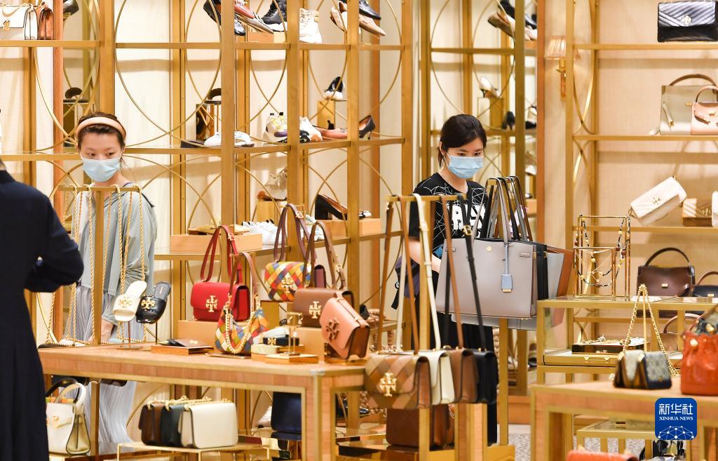 9月10日,游客在中免集團??谌赵聫V場(chǎng)免稅店選購免稅品。
