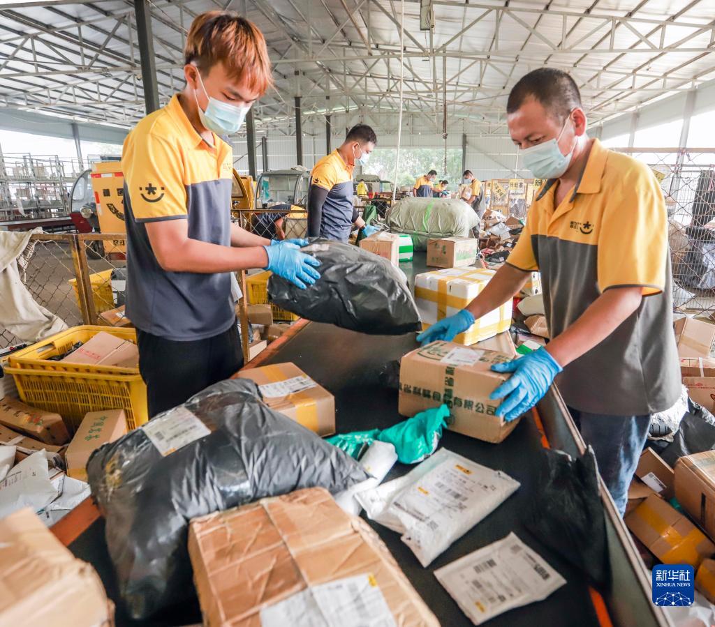 9月10日,河北遵化市一家快遞公司員工在分揀車(chē)間工作。
