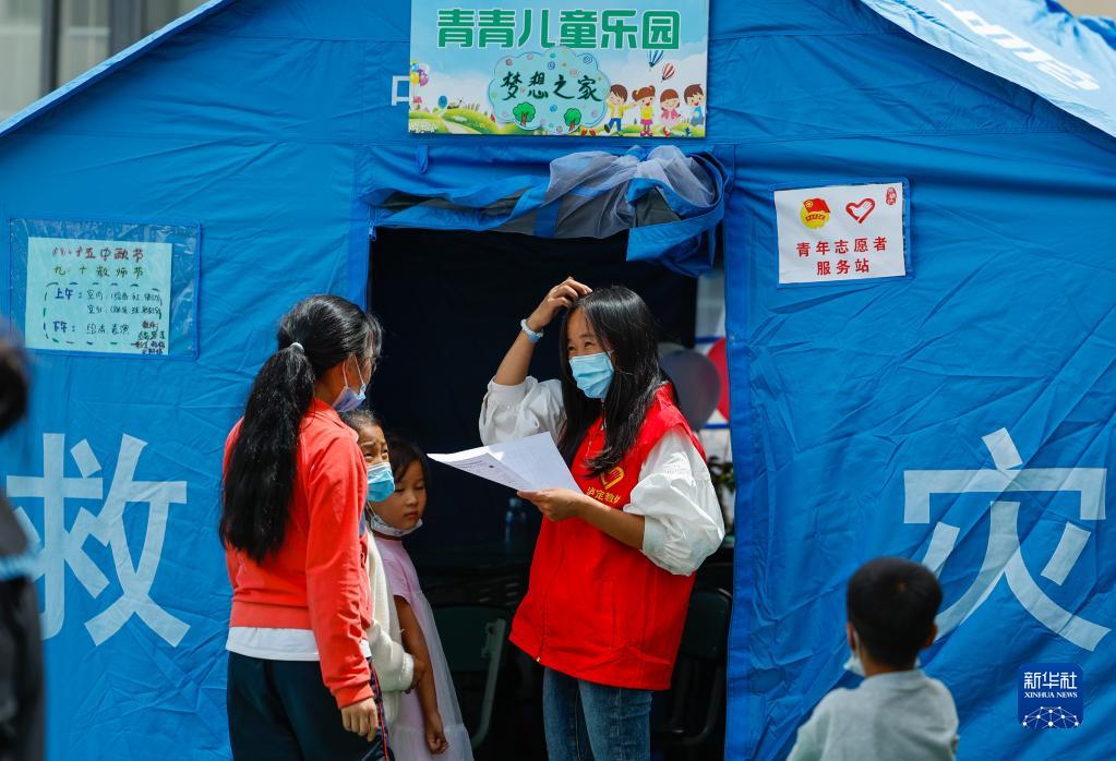 32歲的羅蓮是四川省甘孜州瀘定縣冷磧鎮幼兒園的一名老師?!?·5”瀘定地震發(fā)生后,她于第二天自發(fā)來(lái)到瀘定縣第二中學(xué)校災后臨時(shí)安置點(diǎn)做志愿者,為安置在這里的數百名來(lái)自重災區得妥鎮的群眾服務(wù)。這些易地安置的群眾包括約50名不同年齡段的孩子,羅蓮與其他幾名同樣是老師的志愿者一起,利用三頂安置帳篷開(kāi)設了“帳篷課堂”,帶領(lǐng)孩子們畫(huà)畫(huà)、閱讀、做游戲、做手工等,細心照料、陪伴著(zhù)這些經(jīng)歷了地震傷痛的孩子。