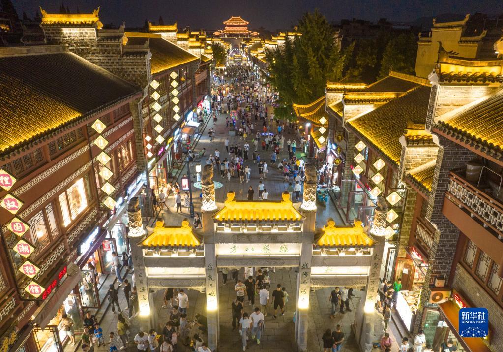 9月11日,市民和游客在湖北襄陽(yáng)古城游玩(無(wú)人機照片)。