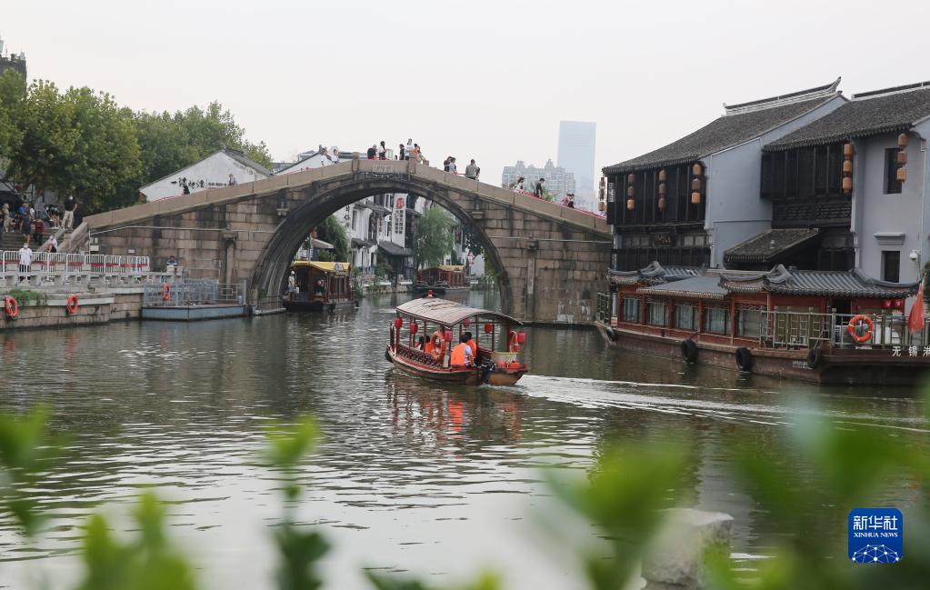 9月11日,游客在大運河江蘇無(wú)錫段的清名橋歷史文化街區游玩。
