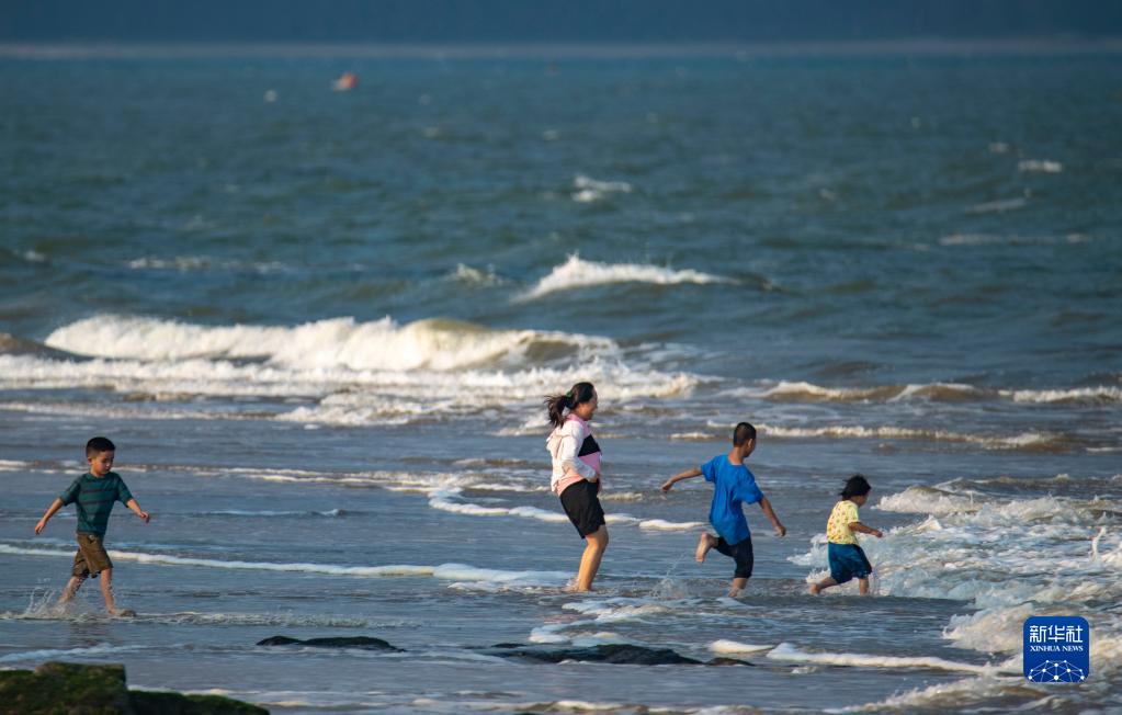 9月11日,游客在海南省瓊海市博鰲海濱戲水游玩。