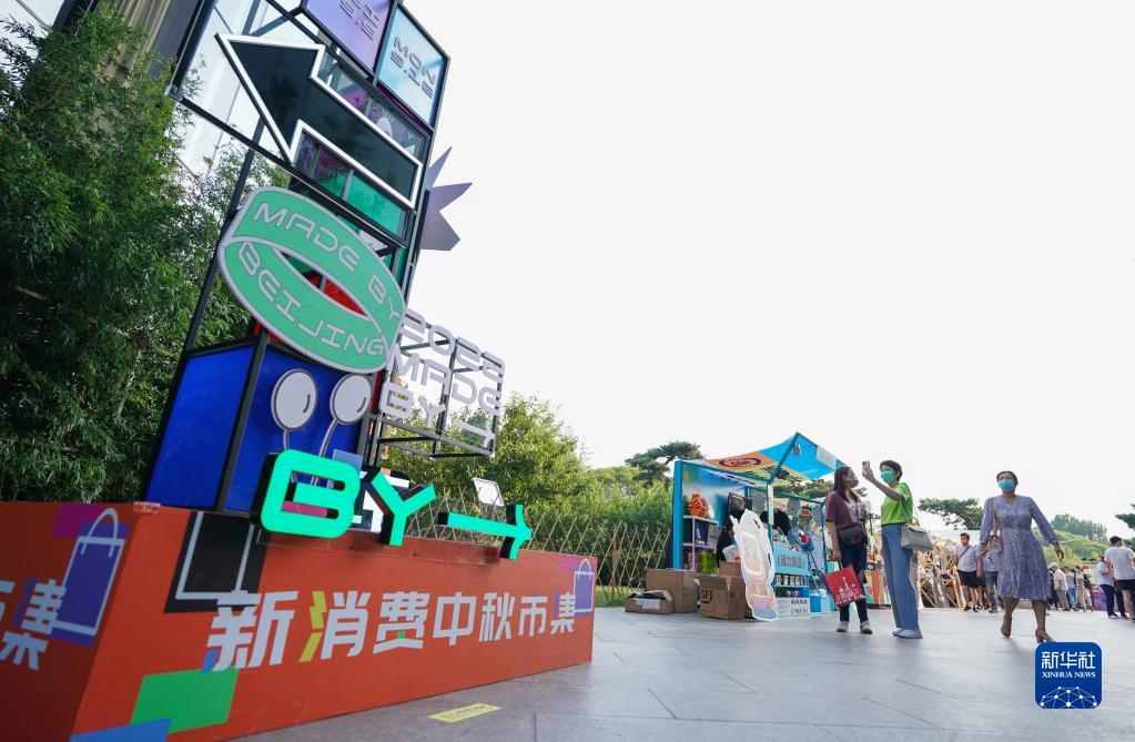 9月11日,人們在北京朝陽(yáng)區亮馬河畔的“中秋市集”上購物休閑。新華社記者 陳鐘昊 攝