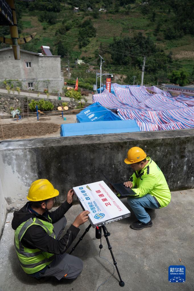 9月10日,在四川省石棉縣幸福村,中國移動(dòng)雅安分公司工作人員在設置網(wǎng)絡(luò )參數。