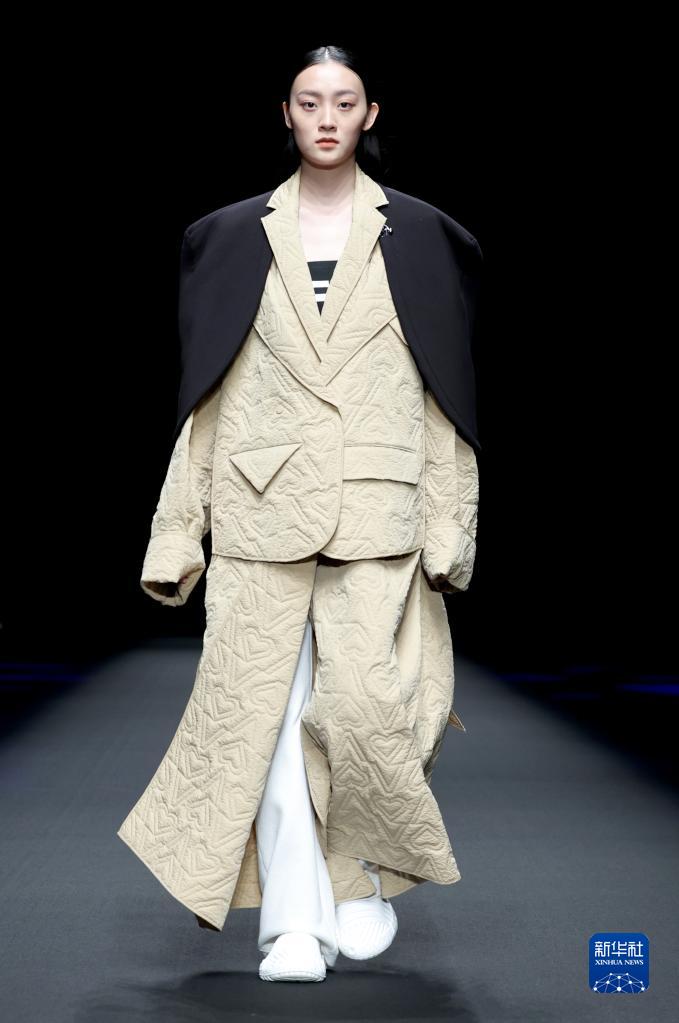 9月11日,模特在北京中國國際時(shí)裝周(2023春夏系列)舉行的“BUONO PLUS·姜佳”時(shí)裝發(fā)布會(huì )上展示設計師姜佳設計的羽絨系列服裝。
