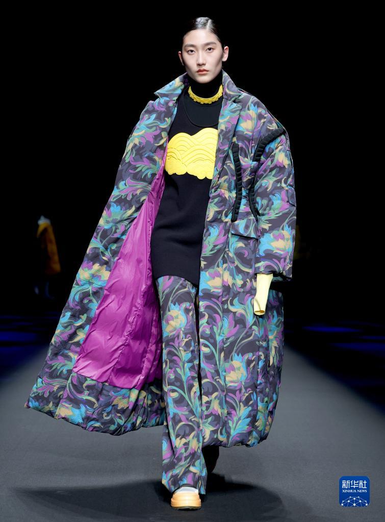 9月11日,模特在北京中國國際時(shí)裝周(2023春夏系列)舉行的“BUONO PLUS·姜佳”時(shí)裝發(fā)布會(huì )上展示設計師姜佳設計的羽絨系列服裝。