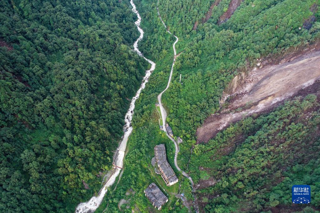 這是9月7日拍攝的海螺溝景區一號營(yíng)地附近的崩塌災害現場(chǎng)(右側部分)(無(wú)人機照片)。