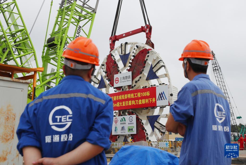 上海:軌道交通崇明線(xiàn)“申通號”盾構機刀盤(pán)順利下井
