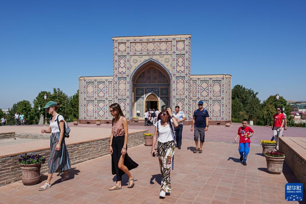 9月3日,人們在烏茲別克斯坦撒馬爾罕市兀魯伯天文臺游覽。