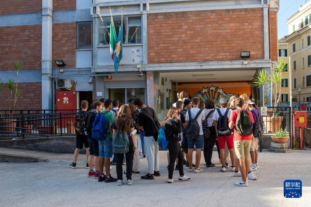 9月12日,意大利羅馬一所中學(xué)的學(xué)生準備進(jìn)入教室。