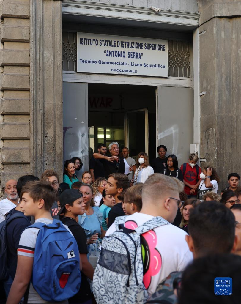 9月12日,意大利那不勒斯一所中學(xué)的學(xué)生等待進(jìn)入校園。