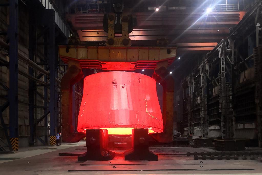 中國一重制造的世界最大異形加氫筒體鍛件(2022年8月30日攝)。新華社發(fā)(劉凱泉 攝)