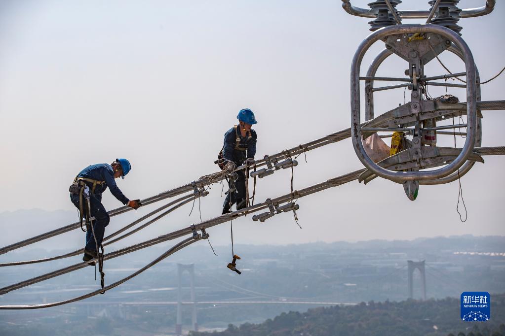 新華全媒+丨“西電東送”大動(dòng)脈 特高壓白浙線(xiàn)在渝順利跨越長(cháng)江