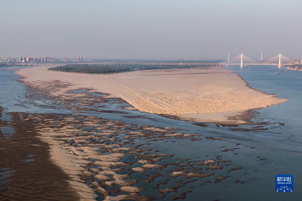 近日,長(cháng)江武漢段水位持續消退,大片灘涂露出江面,天興洲北岸幾乎與漢口江岸連成一片。截至9月13日22時(shí),長(cháng)江漢口站水位為13.58米,較歷史同期均值偏低逾8米。