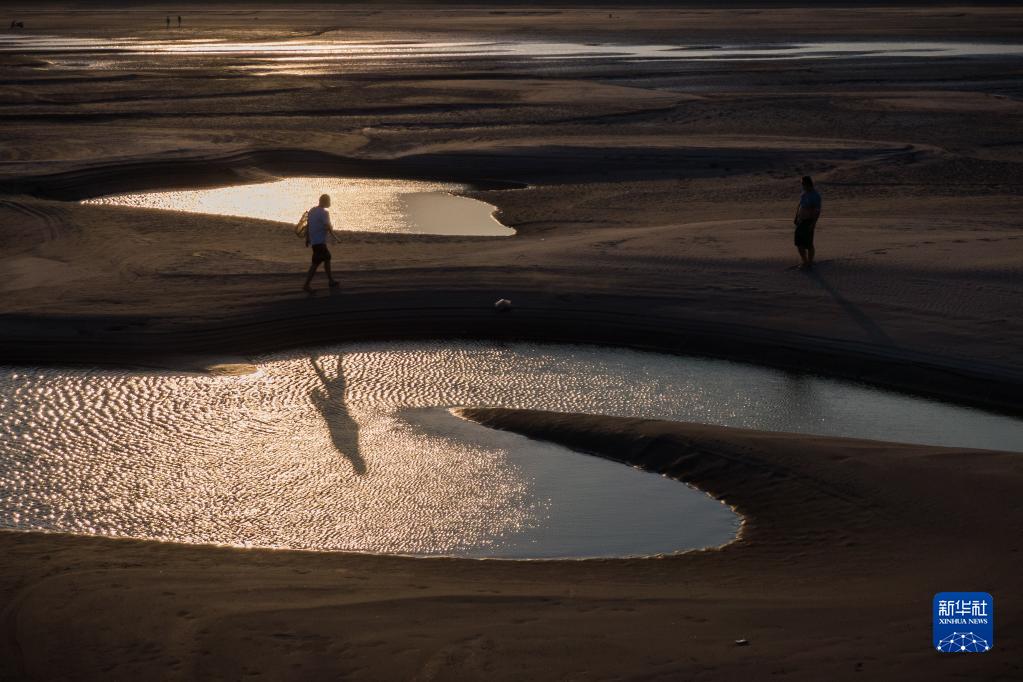 9月13日,市民在漢口江岸灘涂上游玩(無(wú)人機照片)。