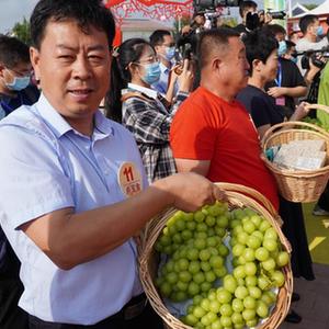 9月14日,在山東省樂(lè )陵市舉行的全國農民技能大賽(種植能手)現場(chǎng),選手在展示自己家鄉的農產(chǎn)品。
