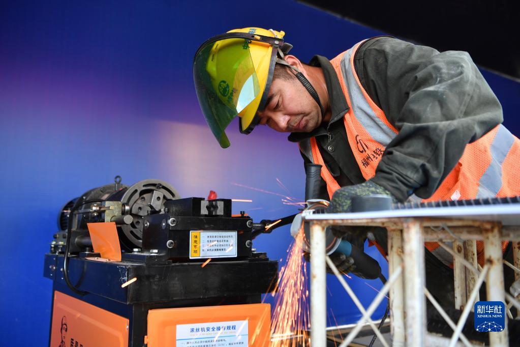 9月14日,參賽選手在鋼筋直螺紋套絲項目比賽中。
