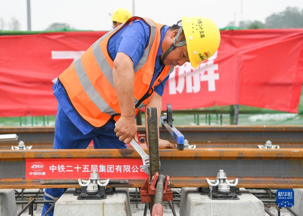 9月15日,施工人員在重慶軌道交通18號線(xiàn)軌道工程一標段作業(yè)。