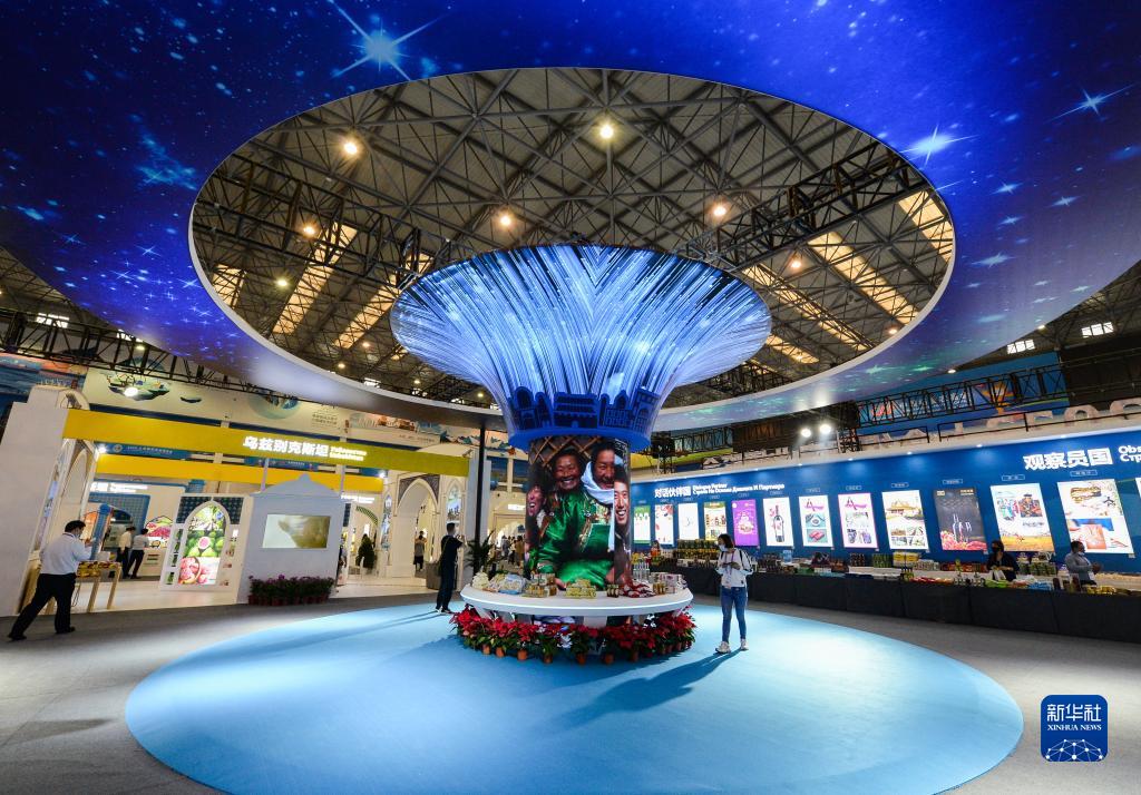9月15日,參觀(guān)者在農業(yè)科技與糧食安全國際交流合作展館了解特色商品。