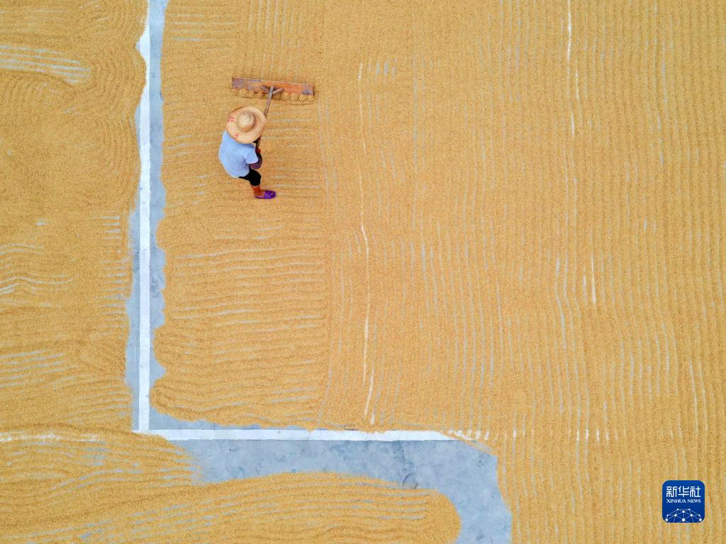 仲秋時(shí)節,農民利用晴好天氣晾曬收獲的農作物,鄉間一派豐收的圖景。