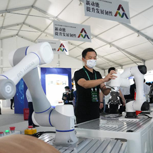 9月15日,在2022年全國大眾創(chuàng )業(yè)萬(wàn)眾創(chuàng )新活動(dòng)周合肥主會(huì )場(chǎng)的主題展區,來(lái)自深圳的越疆科技有限公司參展商展示其公司研發(fā)的智能協(xié)作機械臂。