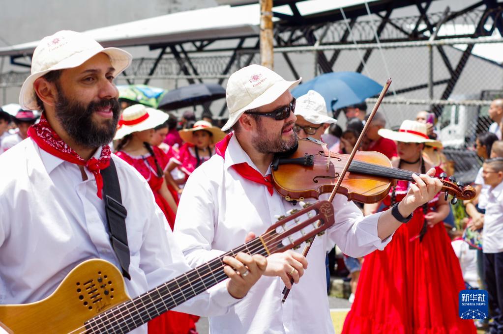 9月15日,在哥斯達黎加埃雷迪亞,民眾走上街頭歡慶該國獨立201周年。