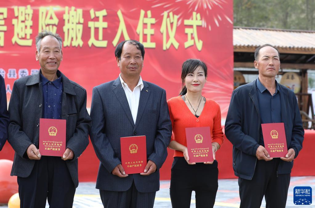 9月15日,甘肅省武威市祁連鎮搬遷群眾代表拿到不動(dòng)產(chǎn)權證書(shū)。