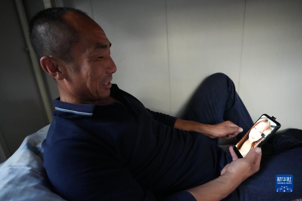 9月7日,忙碌了一天的李長(cháng)吉在宿舍與女兒視頻通話(huà)。