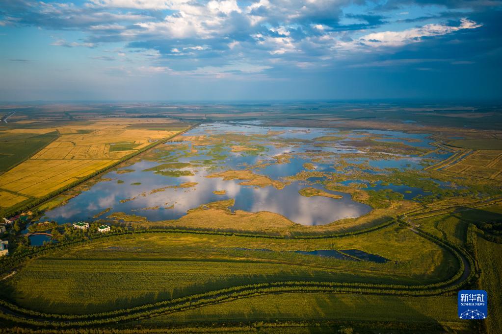 這是9月7日拍攝的富錦國家濕地公園風(fēng)景(無(wú)人機照片)。