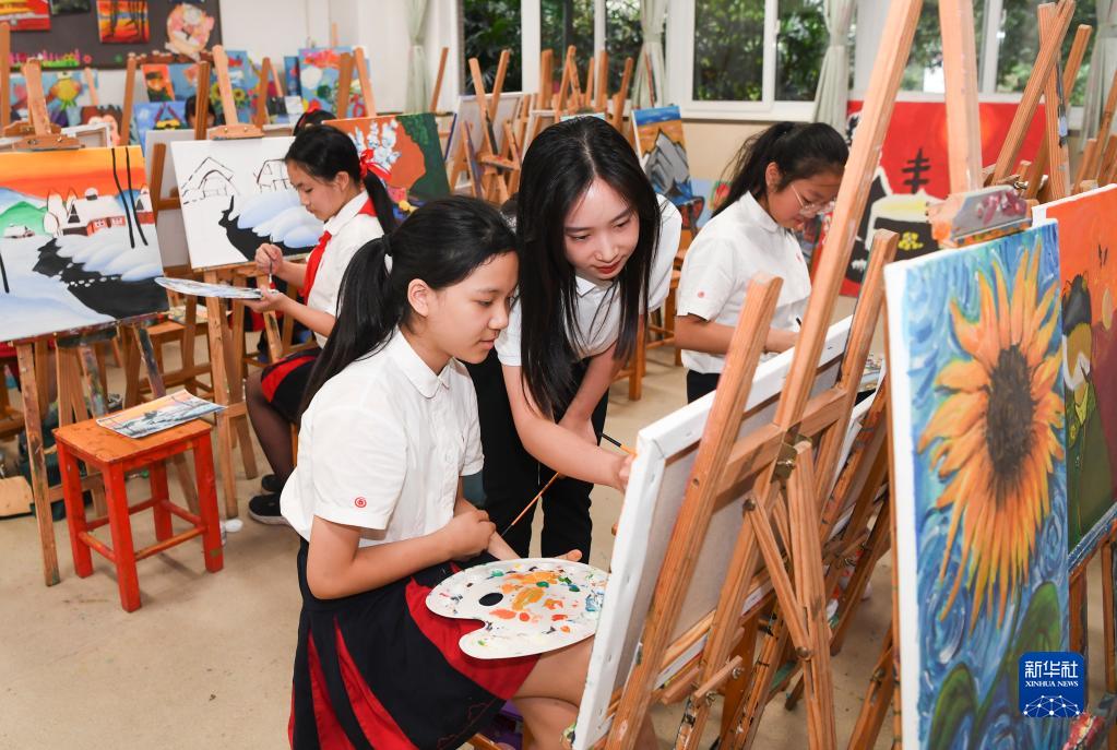 9月14日,重慶謝家灣學(xué)校學(xué)生在練習繪畫(huà)。