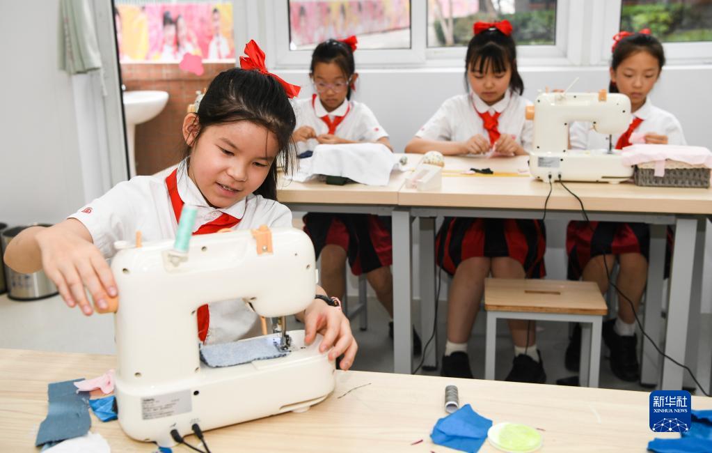 9月14日,重慶謝家灣學(xué)校學(xué)生在練習縫紉。