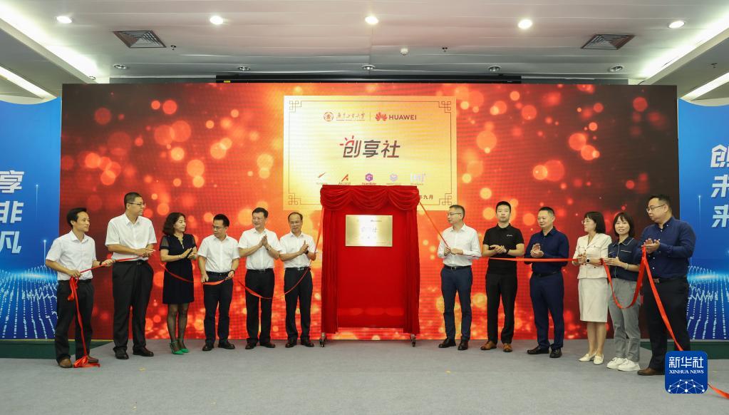 廣東工業(yè)大學(xué)與華為技術(shù)有限公司合作的鯤鵬、昇騰開(kāi)發(fā)者創(chuàng )享社揭牌(9月16日攝)。