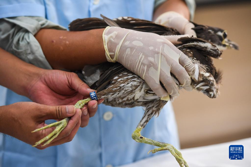 9月16日,傷愈的海南鳽在清遠長(cháng)隆國家級世界珍稀野生動(dòng)植物種源基地野生動(dòng)物救護中心進(jìn)行腳環(huán)環(huán)志。
