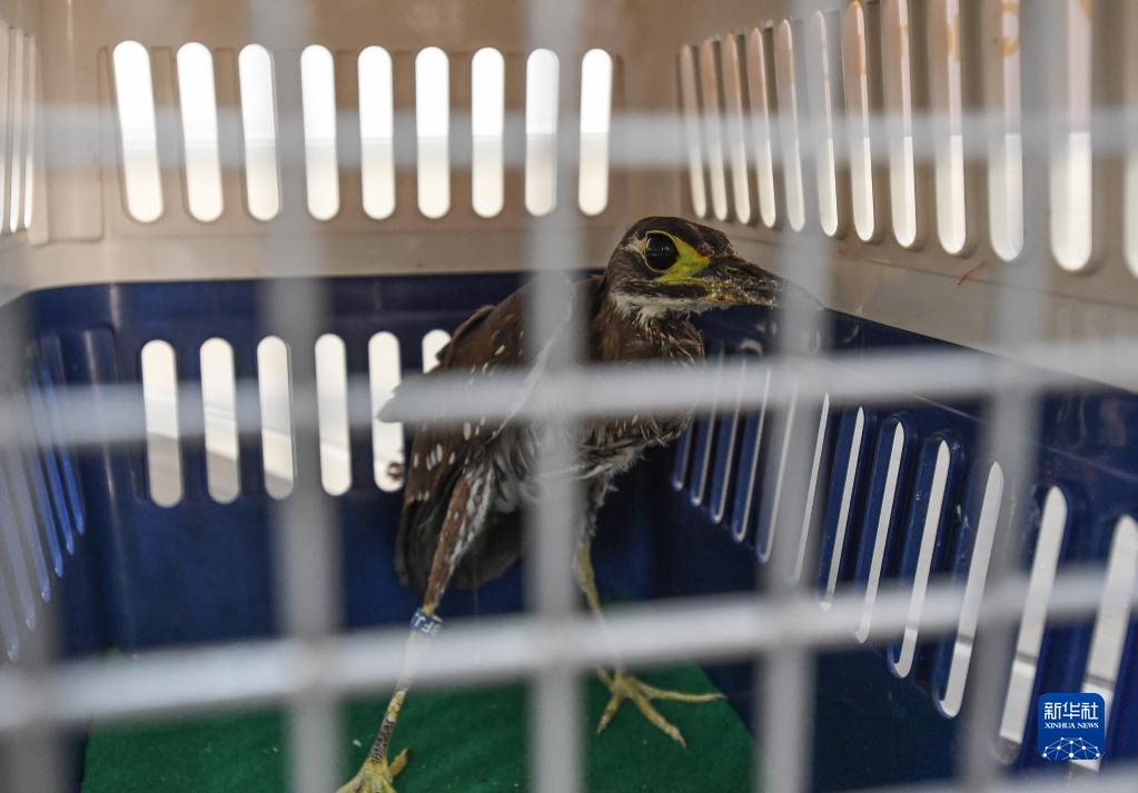 9月16日,經(jīng)過(guò)體檢的海南鳽在清遠長(cháng)隆國家級世界珍稀野生動(dòng)植物種源基地野生動(dòng)物救護中心等待放歸。