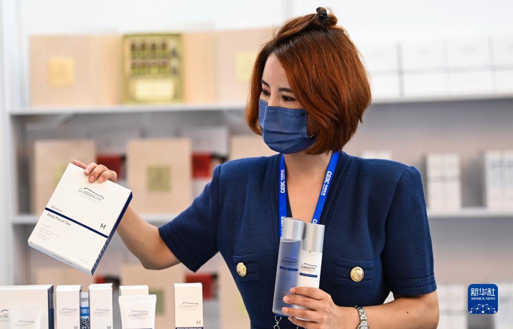 9月16日,在南寧國際會(huì )展中心韓國展館,一名工作人員在推介化妝品。