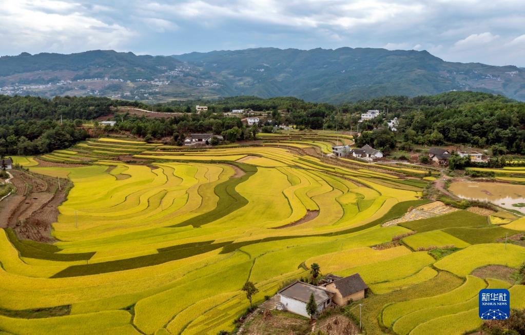 9月16日在貴州省黔西市錦星鄉洪湖村拍攝的稻田(無(wú)人機照片)。