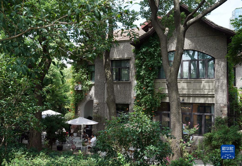 在楊浦濱江,由楊樹(shù)浦紗廠(chǎng)大班住宅改造的咖啡館掩映在綠蔭之中(2022年8月28日攝)。