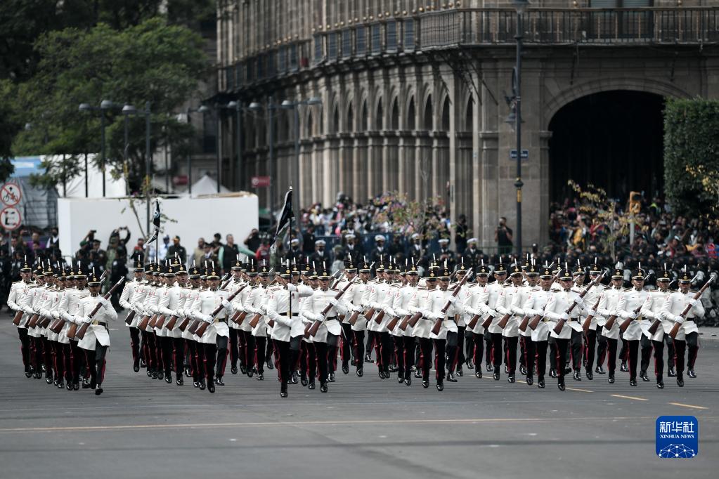 當日,墨西哥在首都墨西哥城的憲法廣場(chǎng)舉行閱兵式,慶祝獨立日。