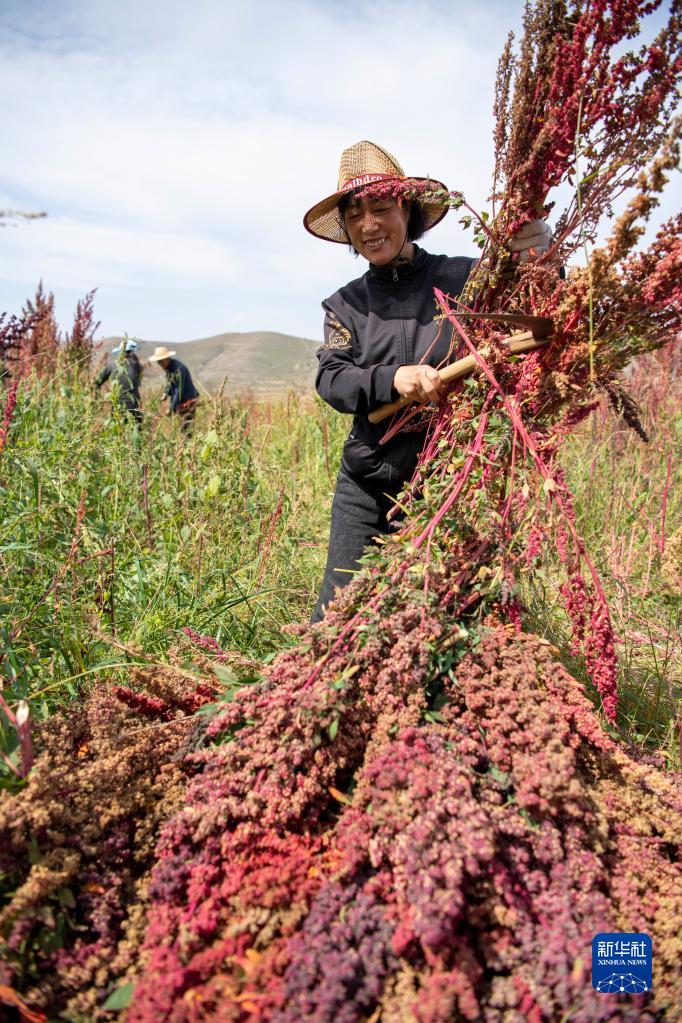 時(shí)下,位于山西省忻州市靜樂(lè )縣的5萬(wàn)多畝藜麥陸續進(jìn)入成熟期,農民利用晴好天氣進(jìn)行收割,田間地頭一派忙碌景象。