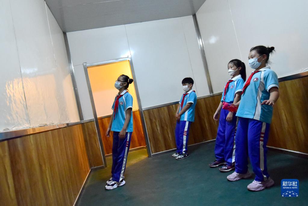 9月17日,河北省邯鄲市叢臺區實(shí)驗小學(xué)的學(xué)生在邯鄲市科技館體驗“奇力斜屋”。