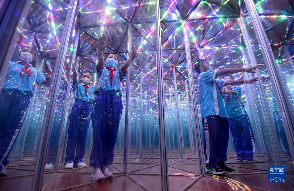 9月17日,河北省邯鄲市叢臺區實(shí)驗小學(xué)的學(xué)生在邯鄲市科技館體驗“魔鏡迷宮”。